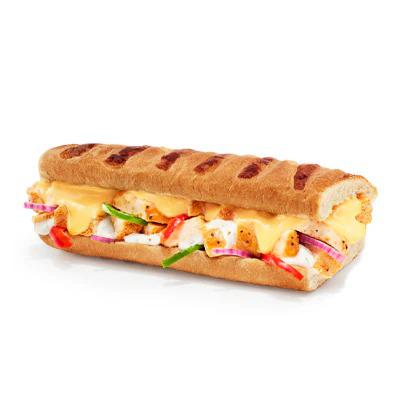 Philly steak⧧, melty mozzarella and American-style cheese, peppers, caramelised red onions and a drizzle of chipotle Southwest sauce. Served on Italian White bread. ⧧ Formed Meat